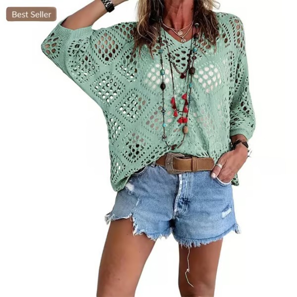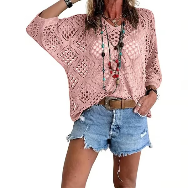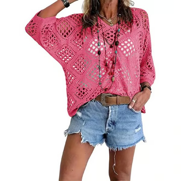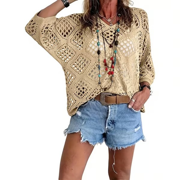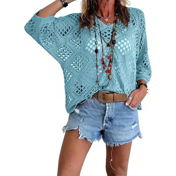 🌞 Crafted from premium lightweight fabric, this crochet top is soft, breathable, and gently stretchable. Ideal for warm weather wear and comfortable all-day use.